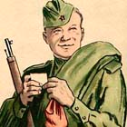 Так называется выставка, которая в преддверии Дня Защитника Отечества открылась в фойе Псковской областной универсальной научной библиотеки. По сути своей, это выставка одной книги А.Т. Твардовского «Василий Теркин». Весельчак и балагур, умеющий в трудную минуту поднять настроение товарищей, подбодрить их шуткой, острым словом, Теркин и в бою проявляет находчивость и мужество.