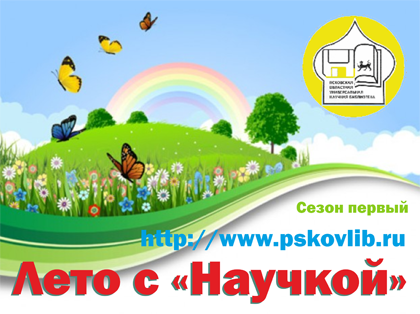 - Лето с «Научкой»! Провести интересно три лeтних месяца вам поможет дружная команда Псковской областной научной библиотеки («Научки»), приглашает всех активных, талантливых и жизнерадостных псковичей совместить летний отдых с увлекательным чтением, хорошей литературой и творчеством во всех его проявлениях!